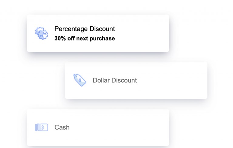 • Percentage Discount — for example, 30% off the next order