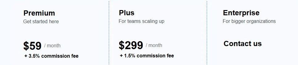 Premium Plan – $59 per month plus a 3.5% commission fee