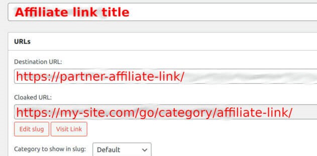 1. Give your affiliate link a title and, if you want, assign it to a category.